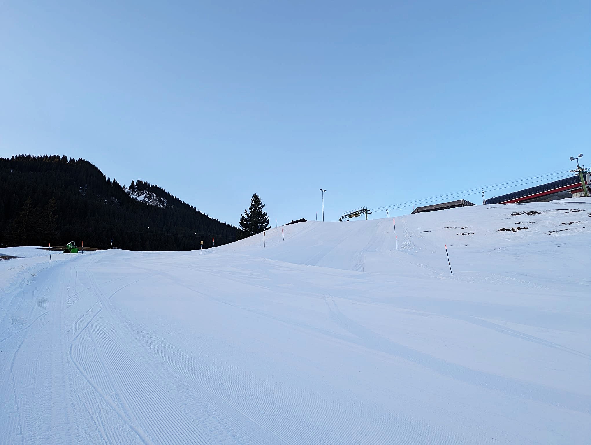 Am Steilhang wurde die Einfahrt durch die Neupositionierung einer mobilen Schneekanone verbreitert und leicht neu ausgerichtet. Der gesamte Hang gewann rund eineinhalb Fahrspuren an Breite. Dadurch entspannte sich die Fahrlinie deutlich, Richtungswechsel wurden harmonischer und Skifahrer bewegten weniger Schnee seitlich und talwärts.